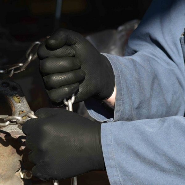 Gloveworks Industrial Black Nitrile Gloves stand up to the toughest jobs. They feature raised diamond texture (RDT )which creates 60% more surface area for an exceptional liquid channeling grip. RDT provides a comfortable fit: fewer contact points with the skin increase airflow and reduce sweating vs. non-textured gloves. The black color conceals dirt and grime.